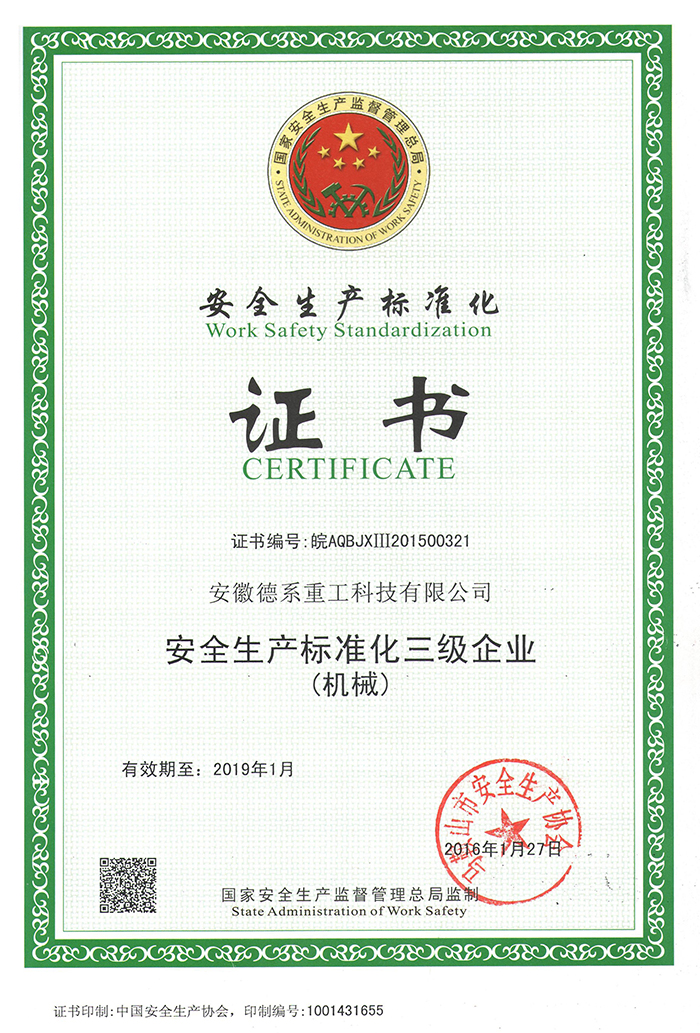 安全生產(chǎn)標(biāo)準(zhǔn)化證書