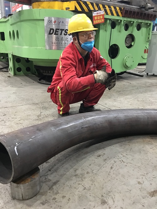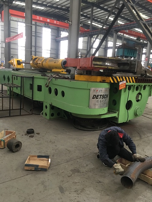 3、彎曲結(jié)束時(shí),主模(a)旋轉(zhuǎn)停止時(shí)的角度就是所需要的彎曲角度。使用多球芯軸(f)和防皺模(g)保證管子(或型材)的橢圓度和內(nèi)壁不起皺。