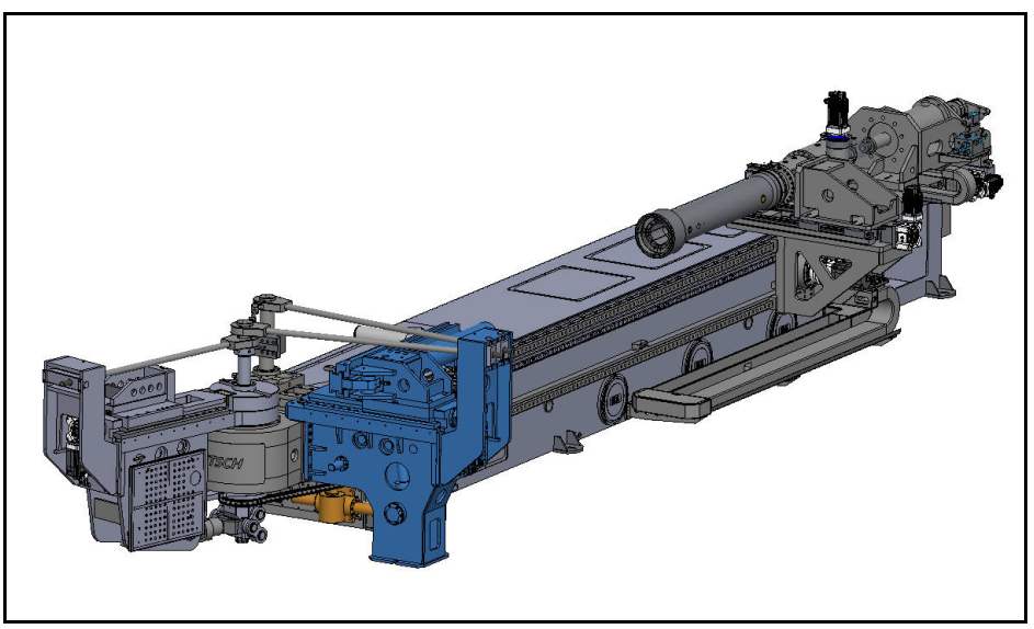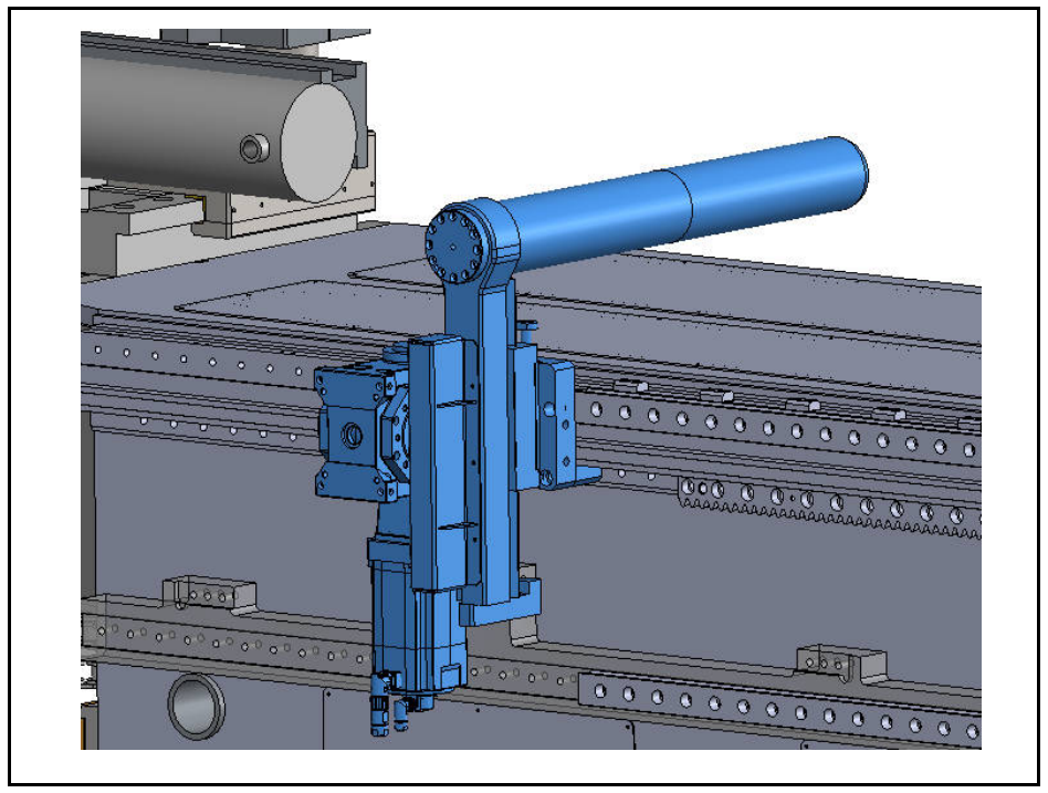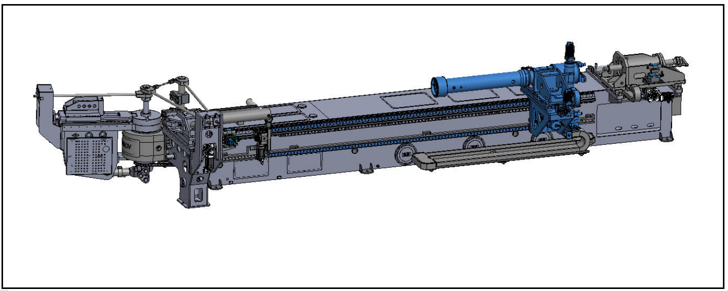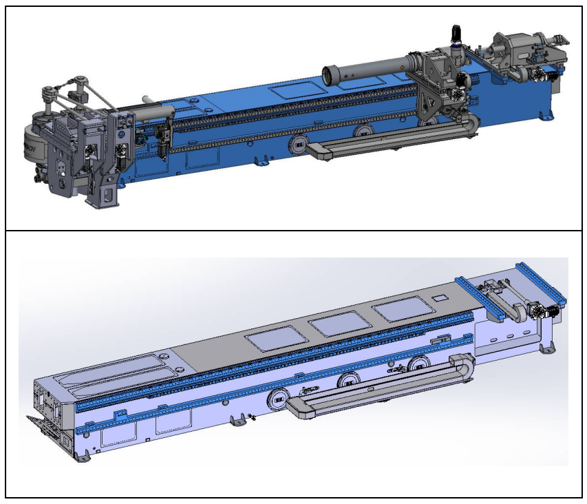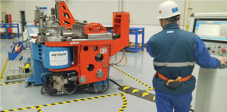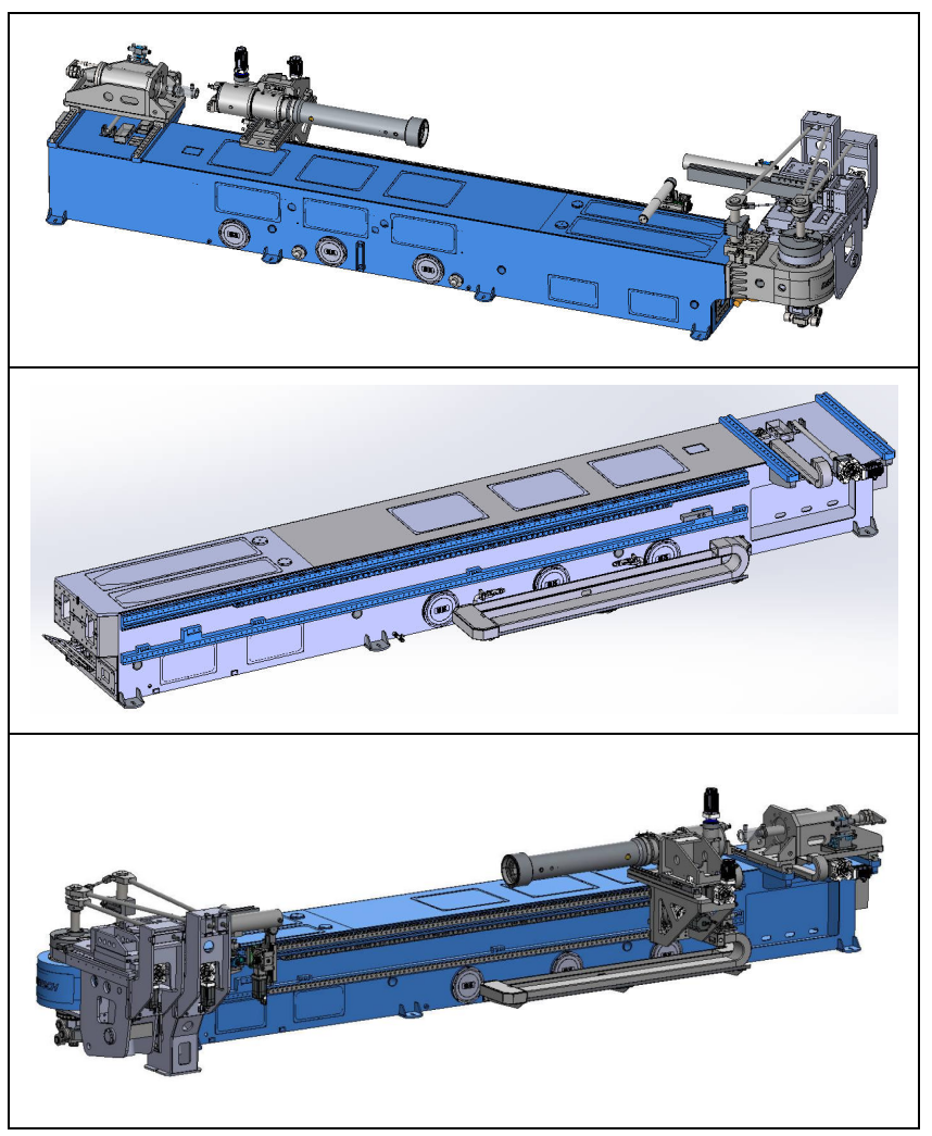 7.2.1.修長的炮筒伸出便于小車模塊伸入機頭區(qū)域(模具中心附近處)彎曲作業(yè),極大有效的減少了對管材末段長度的要求,避免了管材浪費。