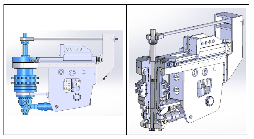 4.3.2.該軸系與平推式夾管工位和開合脫模工位,構(gòu)成了機床在夾管、松開、連續(xù)彎管作業(yè)時的零干涉性能。