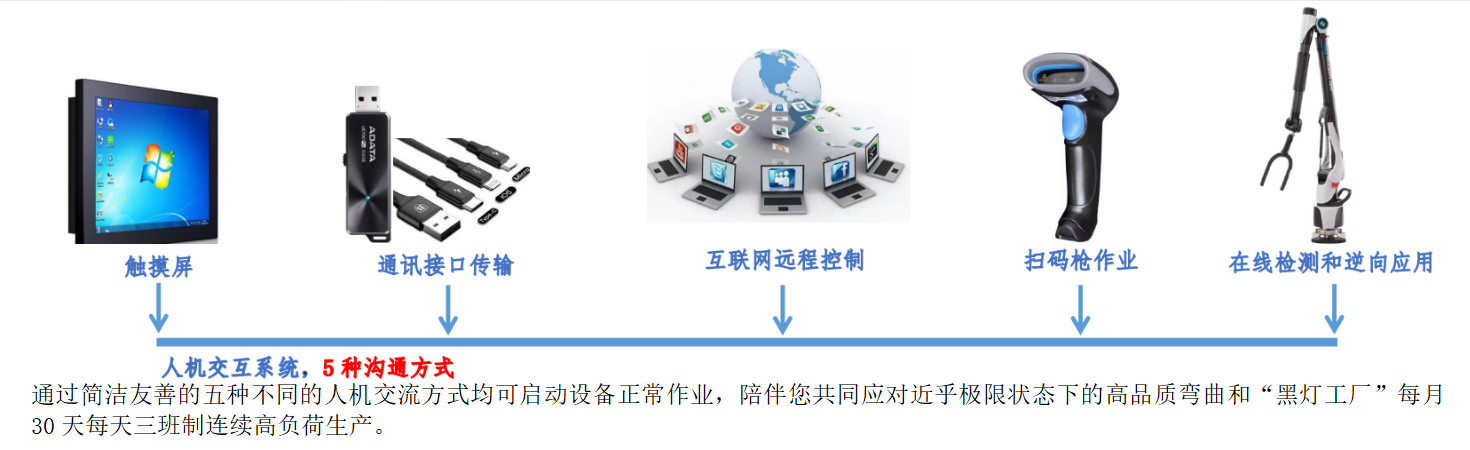 13.1.3.1設計者亦可通過工業(yè)計算機豐富的擴展接口USB、HDMI、Profibus-DP、Profinet、Ethernet、VGA與觸控顯示屏連接,實現(xiàn)低時延人機交互。設備能接收單個或多個彎管數(shù)控指令(mes、csv、xml等格式),進行批量自動彎管。數(shù)控設備系統(tǒng),開放數(shù)據(jù)訪問權(quán)限,便于其他應用系統(tǒng)集成。