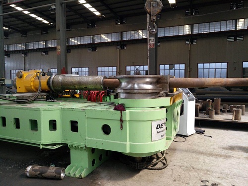 3、彎曲結(jié)束時(shí),主模(a)旋轉(zhuǎn)停止時(shí)的角度就是所需要的彎曲角度。使用多球芯軸(f)和防皺模(g)保證管子(或型材)的橢圓度和內(nèi)壁不起皺。