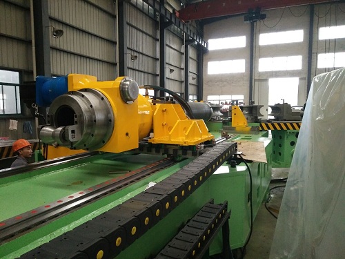 一、機頭和三道軌床身由高強度Q345或16Mn鋼板焊接而成,縱橫交錯加強筋設計并經退火消除內應力和拋丸處理。床身有足夠的強度和剛性,插芯彎管時無震動現象,防永久變形,也同時為三個90°分布的重載滾柱直線道軌提供高精度保持性基礎。整機由龍門加工中心整體加工,床身和機頭有極高的精度(實用新型專利)。