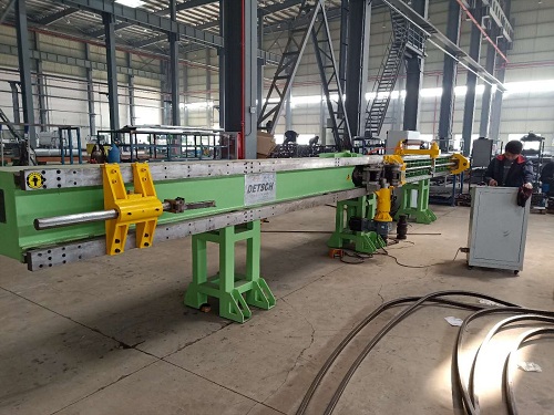彎曲時夾緊管子(或型材)與a、c結(jié)合實現(xiàn)纏繞式拉拔工藝。 |